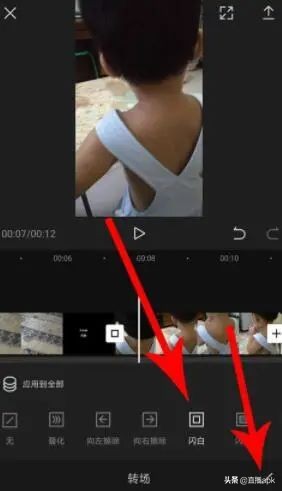 闪白加快转场有掩盖镜头剪辑点的作用,增加视觉跳动,感觉就像光学变化,然片段看起来不单调,而且最好保持即使在最白的时候也隐约有东西可见,也就是说不采用纯白的单色。同理闪黑也可以先让暗部涌出来。