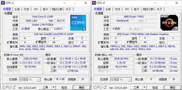 从参数上看,酷睿i5-1240P的核心数量有着一定的优势,而锐龙7Pro6850U则有着更高的频率和更大的三级缓存。