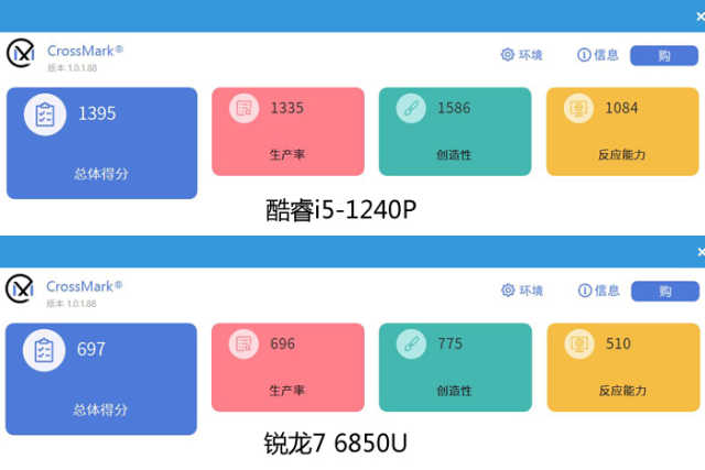 CrossMark是一款生产力测试工具,包含生产率、创造性、反应能力三个维度,反映出PC的综合性能。