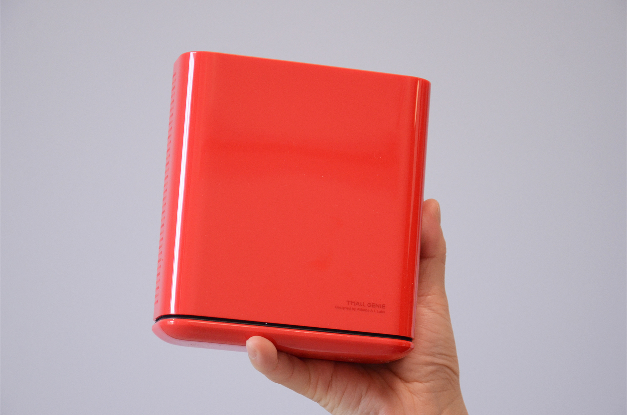 天猫精灵“小红盒”智能投影仪整体以红色为主,外壳还应用了高光亮面工艺进行打造,给人一种“高品质、有设计”的视觉感,最主要的是“小红盒”重量很轻且小巧,就算是女生也能单手拿稳,放到包包中更不在话下,完全可以堪称是“可随身携带的电影院”。