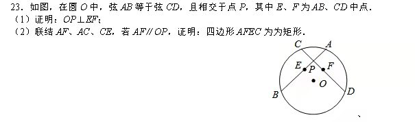 (1)E,F为AB和CD中点,通过等弦对等弦心距,OE = OF且OE⊥AB,OF⊥CD