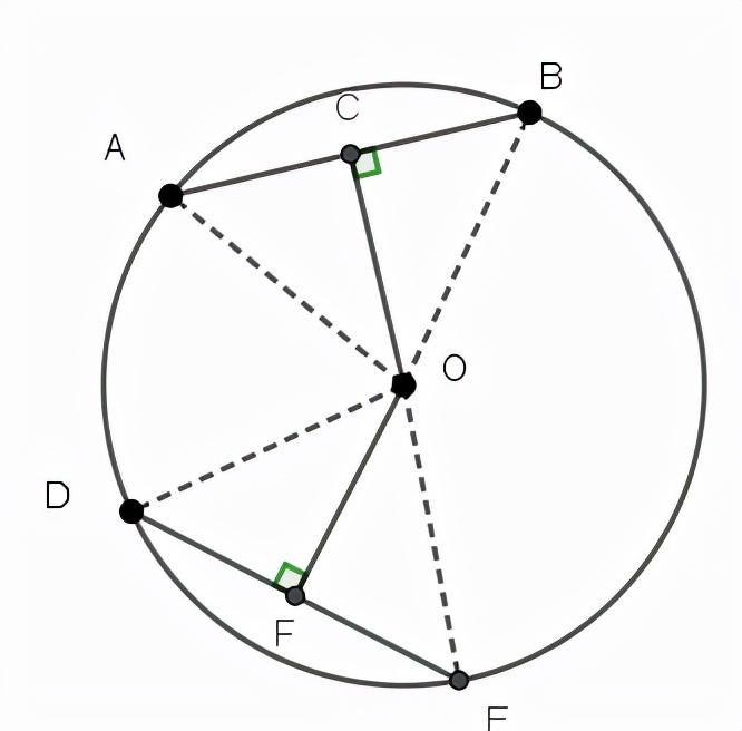 弦心距相等弦相等。(OC=OF ⇔ AB=DF)