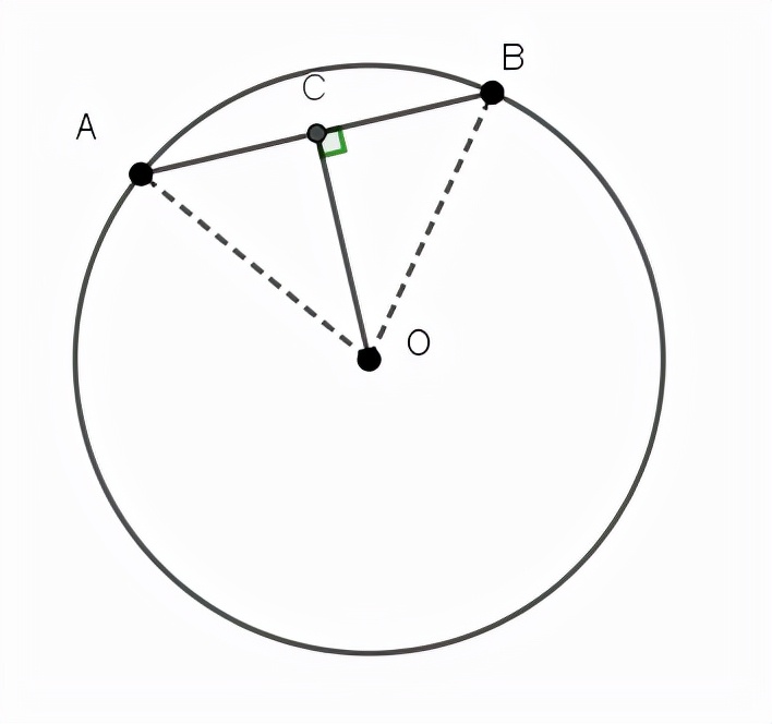 垂直于弦的直径平分弦且平分这条弦所对的两条弧。数学表达为:如下图,直径DC垂直于弦AB,则AE等于EB,弧AD等于弧BD(包括优弧与劣弧),半圆CAD等于半圆CBD。