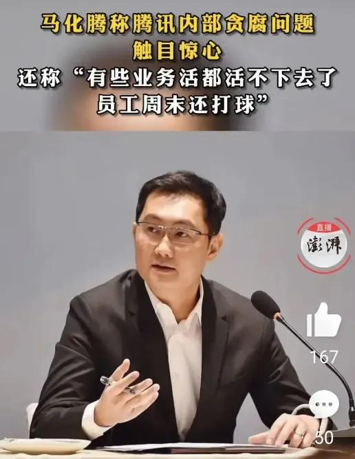 前段时间网上流传马化腾在腾讯内部会议上的讲话,其中一句是腾讯的腐败令人触目惊心。这句话传来了,颇感震惊和意外。