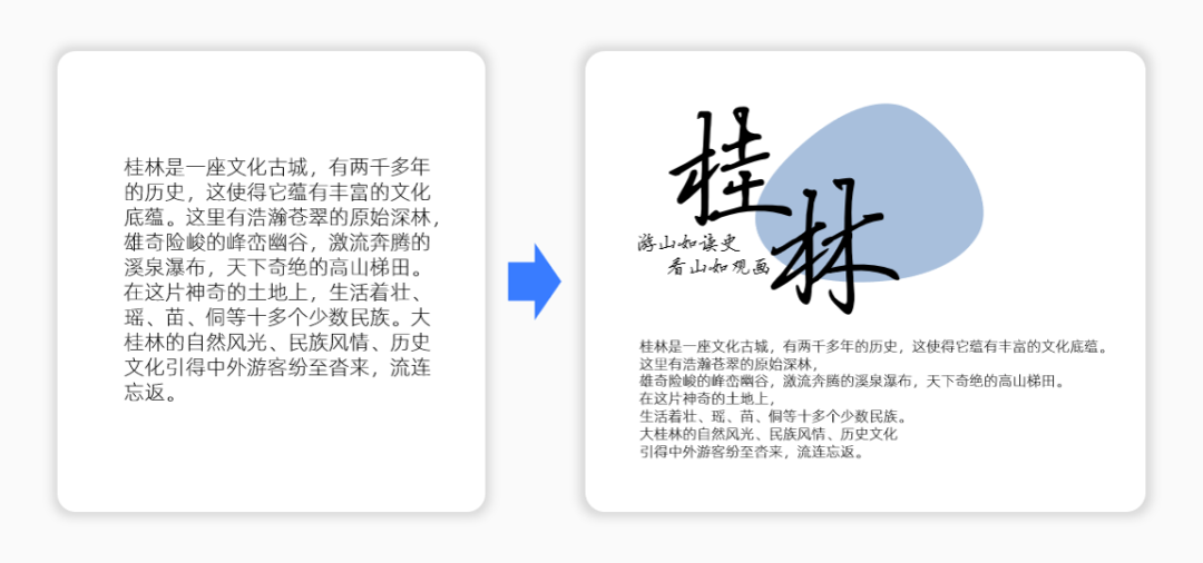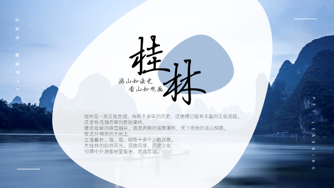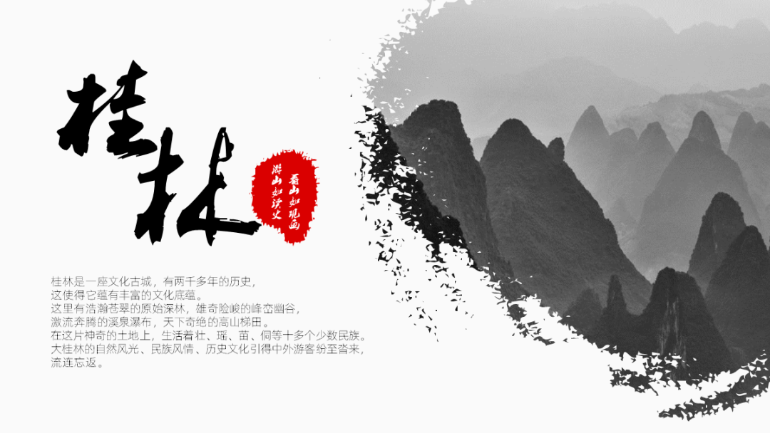 其次是大标题也可以有点中文的特色,我一般喜欢把标题的文字拆成多个文本框,参差不齐的大号文字看起来比较有美感: