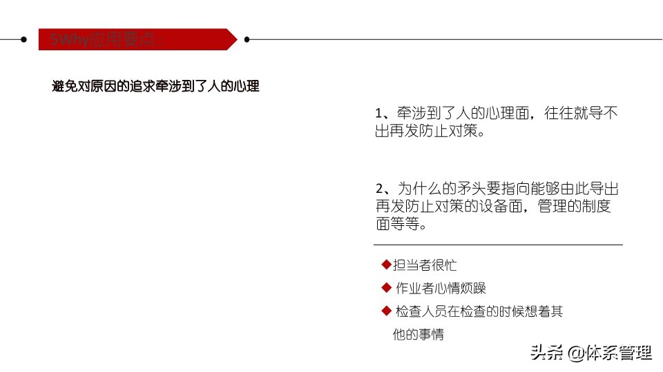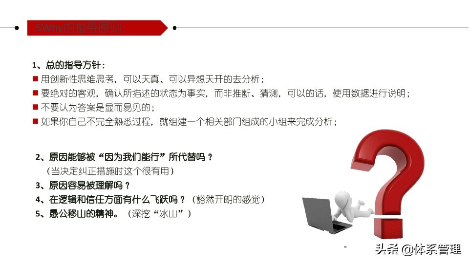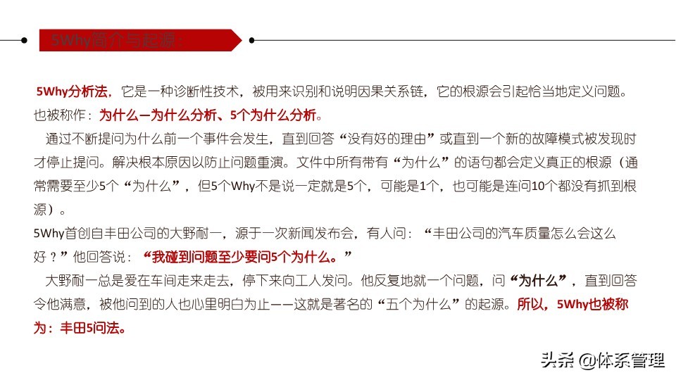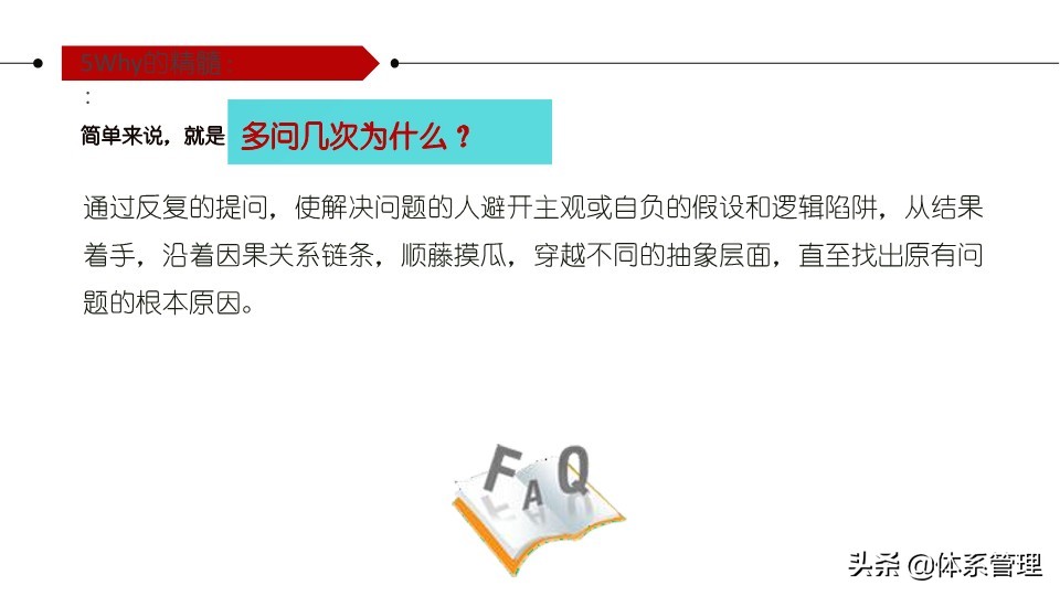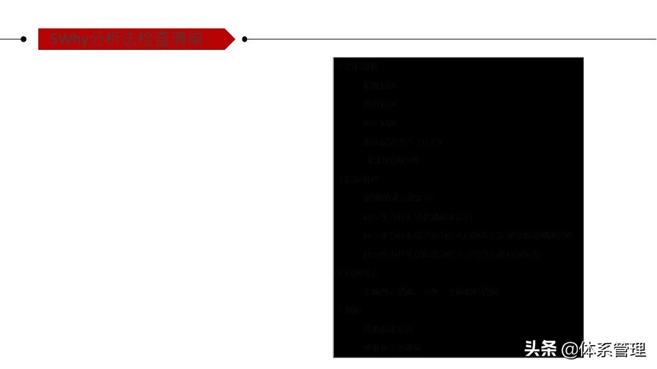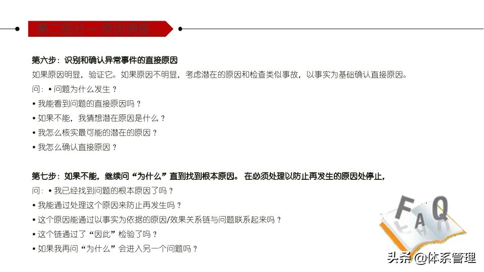 1.5Why问题分析法ppt----未完部分,可获取原文件阅读!【资料下载方式】方法①:关注同名公众号《体系管理》,发送(资料名称)下载!方法②:本文摘自t.zsxq.com/uJEiim2,加入搜索文件名查阅原文!【体系管理】专注于质量、环境、职业健康安全等管理体系知识的分享!分享内容:企业内外部培训教材PPT、管理体系制度文件、表单模板案例、内部审核技巧、外部审核准备迎审技巧、管理体系建设实战案例、注册审核员考试资料、内部审核员培养教程、质量/安全/精益生产制造行业书籍电子书;GB/GBT/HB/DB/QB/GJB/法律法规分享及解读、ISO9001/ISO14001/ISO45001/IATF16949/ISO13485/ISO27001/ISO17025/ISO22000/VDA系列/CQI系列/体系管理知识及培训教材分享!!!【免责声明】本文摘自网络(t.zsxq.com/uJEiim2),版权归原作者所有,如侵权请私信联系删除,谢谢!
