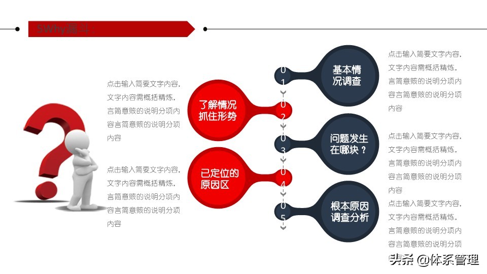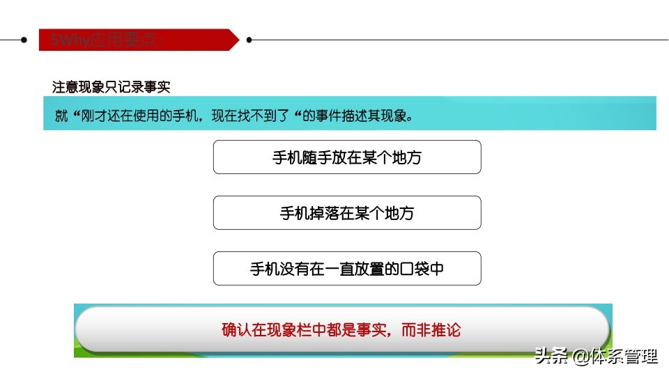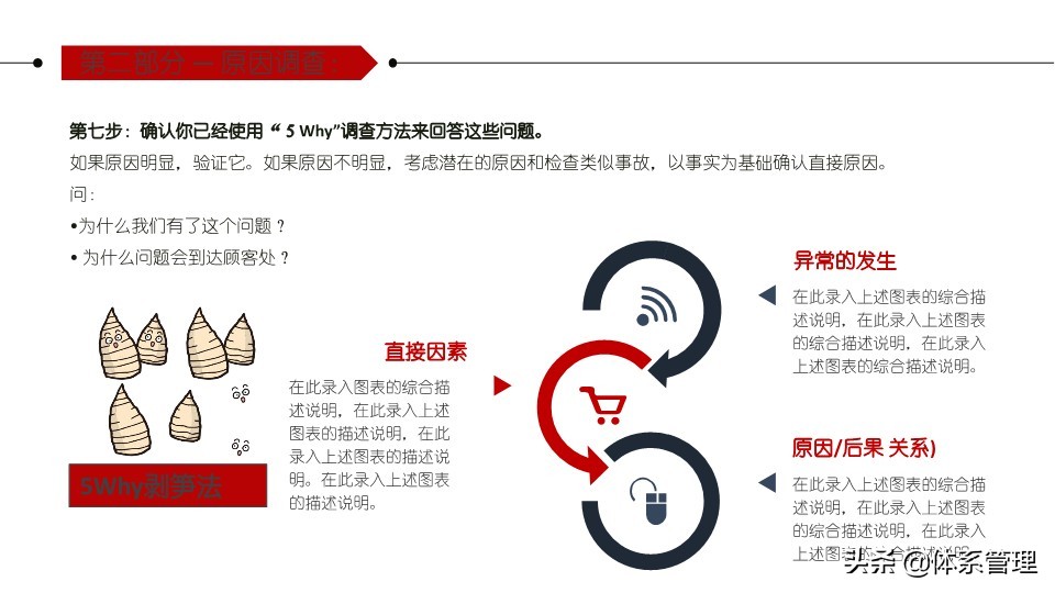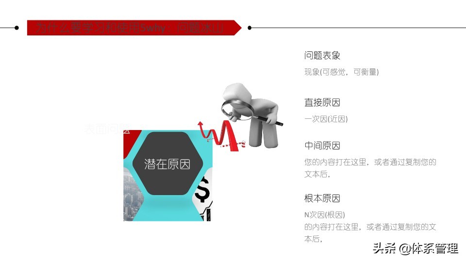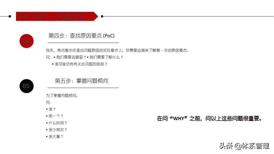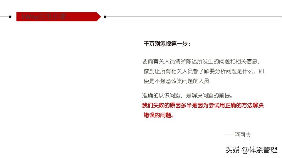 1.5Why问题分析法ppt----未完部分,可获取原文件阅读!【资料下载方式】方法①:关注同名公众号《体系管理》,发送(资料名称)下载!方法②:本文摘自t.zsxq.com/uJEiim2,加入搜索文件名查阅原文!【体系管理】专注于质量、环境、职业健康安全等管理体系知识的分享!分享内容:企业内外部培训教材PPT、管理体系制度文件、表单模板案例、内部审核技巧、外部审核准备迎审技巧、管理体系建设实战案例、注册审核员考试资料、内部审核员培养教程、质量/安全/精益生产制造行业书籍电子书;GB/GBT/HB/DB/QB/GJB/法律法规分享及解读、ISO9001/ISO14001/ISO45001/IATF16949/ISO13485/ISO27001/ISO17025/ISO22000/VDA系列/CQI系列/体系管理知识及培训教材分享!!!【免责声明】本文摘自网络(t.zsxq.com/uJEiim2),版权归原作者所有,如侵权请私信联系删除,谢谢!
