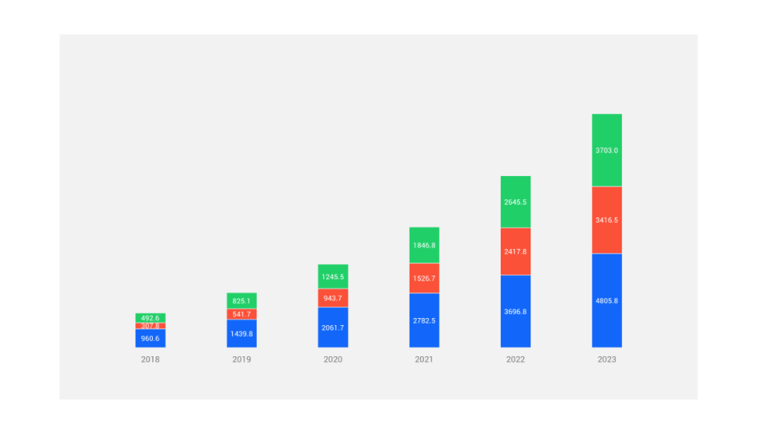 原稿图表的间距过大,看起来有些松散,同时色彩搭配不够和谐,图表中的数据看不清楚: