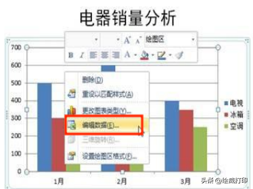 2.2 、接着我们右击图表中的任意一处位置,在弹出的文本框中选择“编辑数据”3、接着需要打开第一季度的销售数据表格
