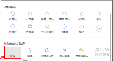 然后在自定义动画窗口点击添加动画,在绘制自定义路径下面选择直线,如图9