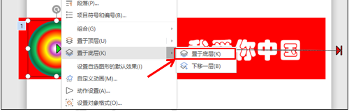然后我们选中圆,点击鼠标右键,在下拉菜单中选择置于底层,如图11