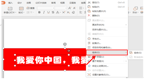 字体颜色改为白色,然后按住Ctrl键,同时选中文本框和矩形,点击鼠标右键,选择组合选项,如图4