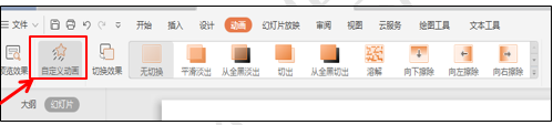 然后我们选中圆,点击动画菜单栏下的自定义动画,调出自定义动画窗口,如图8