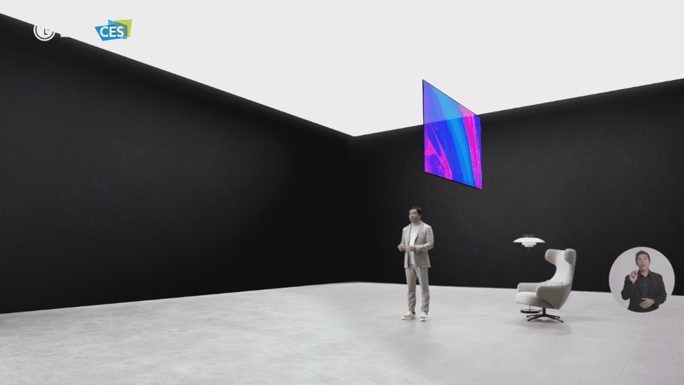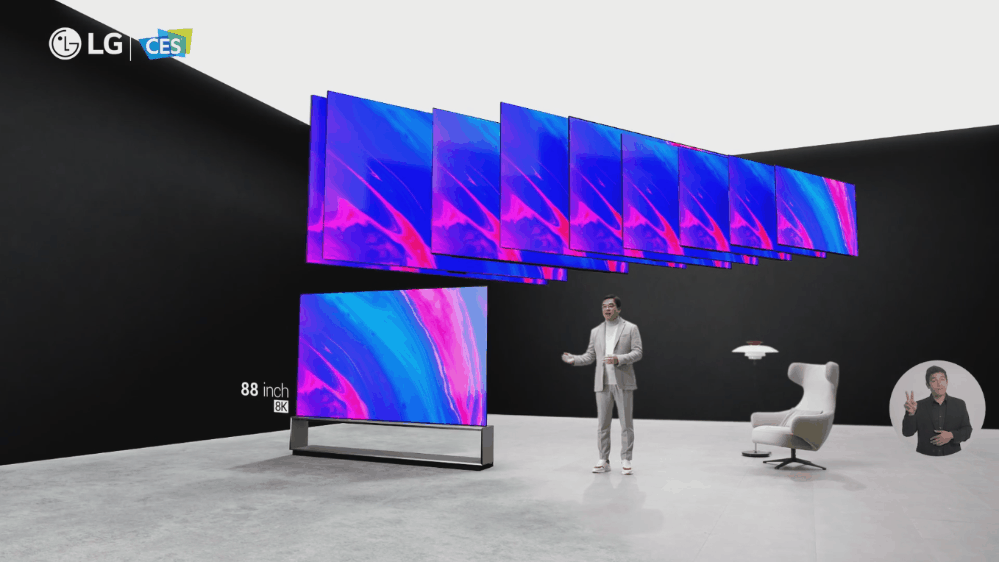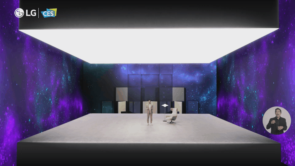 这次LG是线上发布会,发挥的空间更大。打造了一个三面环抱的屏幕,沉浸感很强。