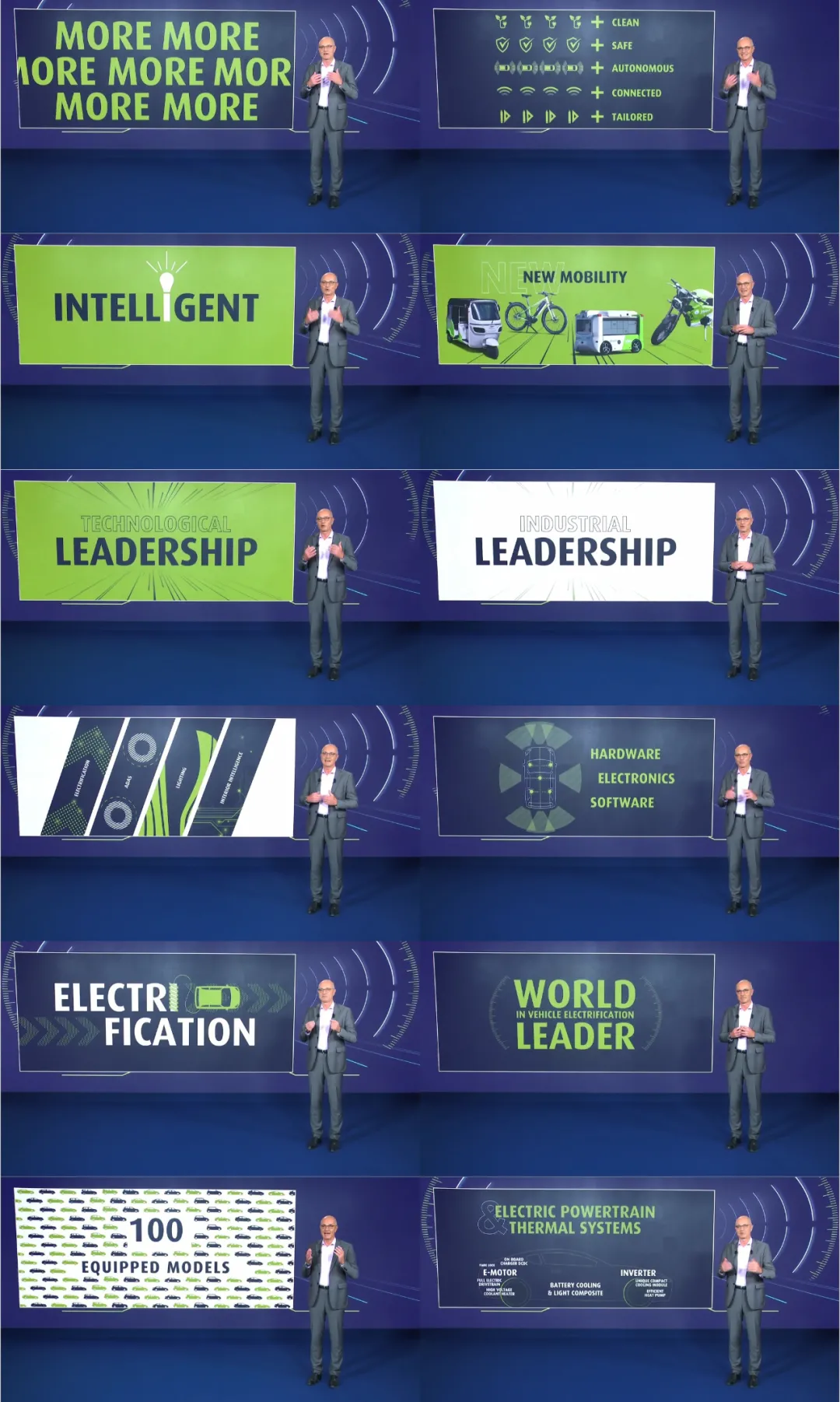 Valeo严格遵守公司的VI标准,采用大字+平面图形的方式,娓娓道来讲故事,给人以严谨、专业的形象。
