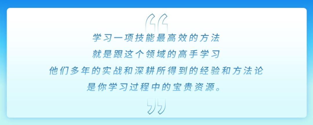 而学习一项技能最高效的方法,就是跟这个领域的高手学习。
