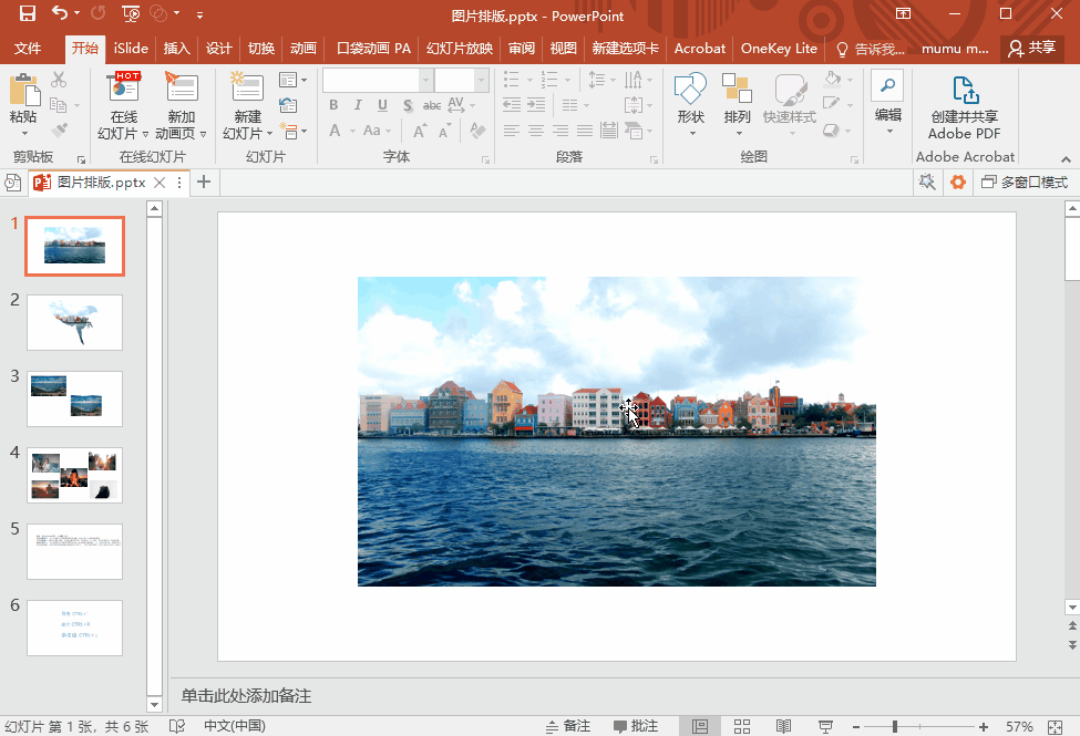 画中画效果也是很有格调的,我们也可以利用OK插件试着做下这个效果。在PPT中选中图片,点击【OneKey】--【图片组】--【一键特效】,然后选择【图片画中画】,画中画效果就制作完成了~