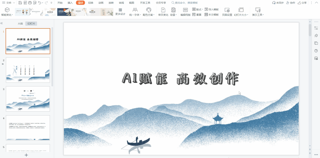 前往官网下载最新版本的WPS Office,在PPT页面上方点击【设计】点击【智能美化】就可以找到这个功能啦!