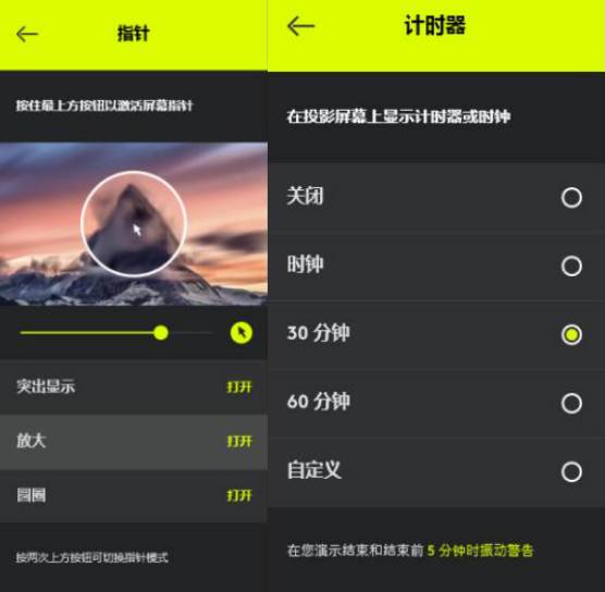 至于定时功能,用户可以自定义演示时间,在时间结束5分钟前,演示器会通过振动方式提醒用户。而且在演示过程中,用户还可以临时关闭演示画面、退出PPT修改内容,因此罗技Spotlight无线显示器是一款功能强大的产品,可以让你的演示过程更加的顺畅和高效。