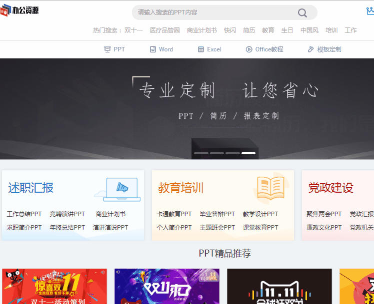 教大家一个最简单的的办法就可以让自己的PPT看起来就很完美,就是套用模板。让专业人士去做,我们直接套入内容就可以得到漂亮的PPT。--办公资源网一个好用的网站,里面不仅有大量的PPT模板,还有Excel和Work模板供我们使用。