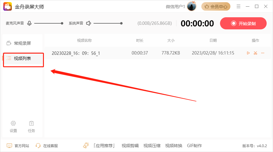 6、停止录制之后,系统会自动保存录屏文件,在【视频列表】就可以看见了。