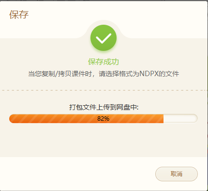 在这样环境下教师教学资源准备工作与上面操作相同,都需要将教学资源完成制作,最后点击“保存”,101教育PPT会自动生成NDPX格式文件并上传到我的网盘。