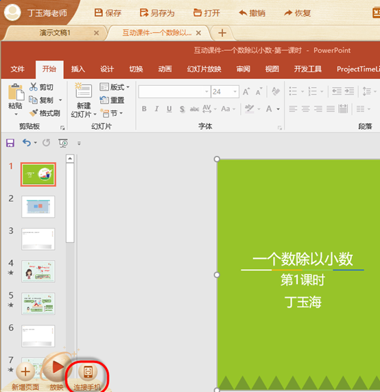到教室后,我们登陆101教育PPT账户,从“我的网盘”中找到自己保存的课件,点击“打开”就可以正常使用了。由于教室里面具备了网络,这个时候点击左下角的“连接手机”,用手机端101教育PPT扫码,让手机与电脑连接起来。