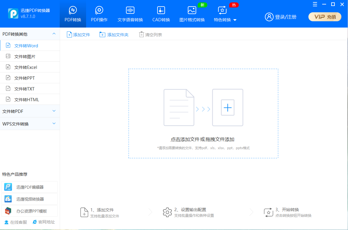 除了系统自带的转换方法以外,还有一种更加高效的方法就是使用迅捷PDF转换器,这款软件是专门为各种格式与PDF互相转换而开发的,还包括文字语音转换、CAD转换、图片格式转换、特色转换等等操作。