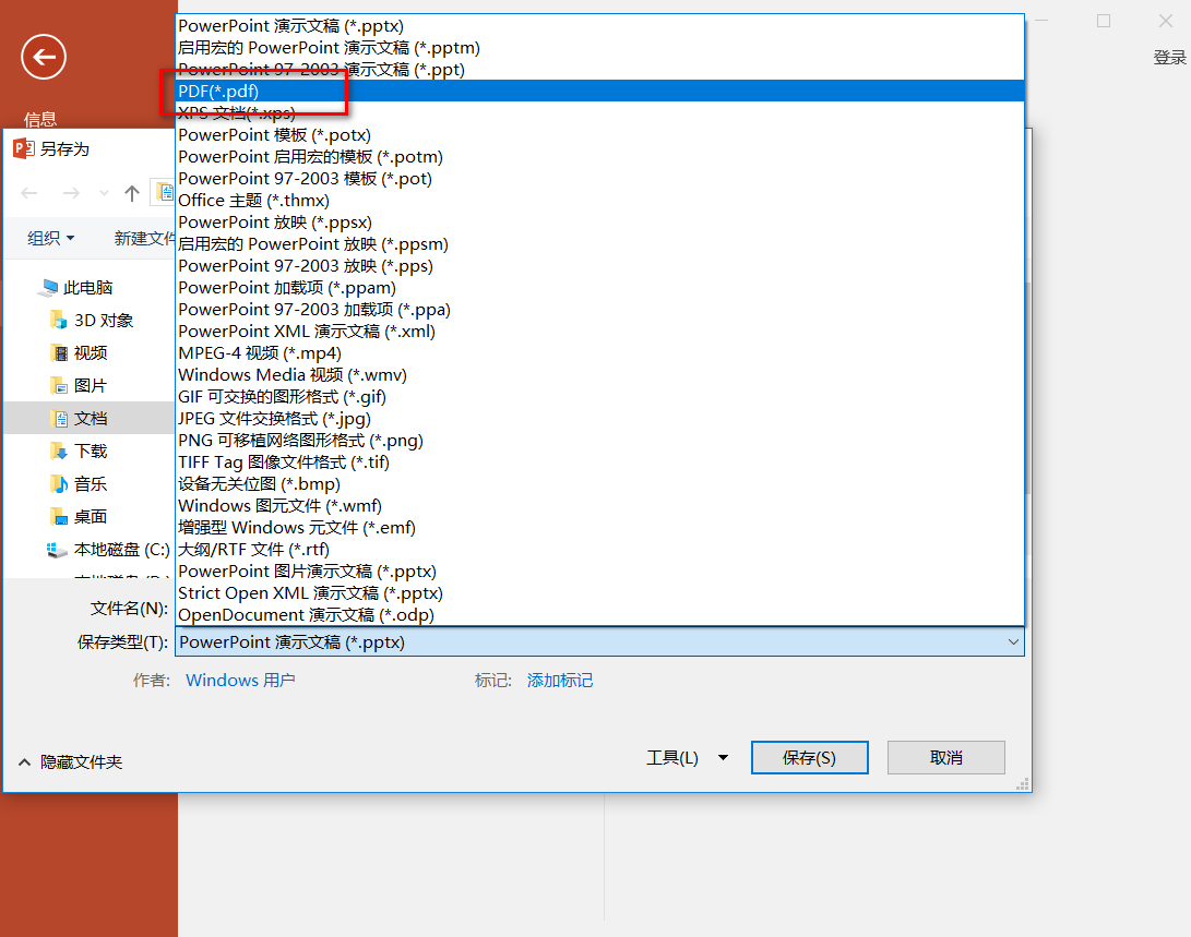 在打开的PPT文档中点击左上方文件-另存为,保存的格式修改为PDF格式,然后确定保存就可以将PPT的格式转换为PDF格式了,是不是非常简单粗暴呢~