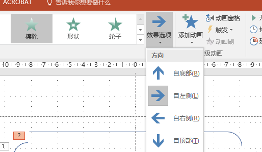 第四步:设置上面形状的动画,点击上边的形状,选择动画菜单—擦除—效果选项—自左侧。