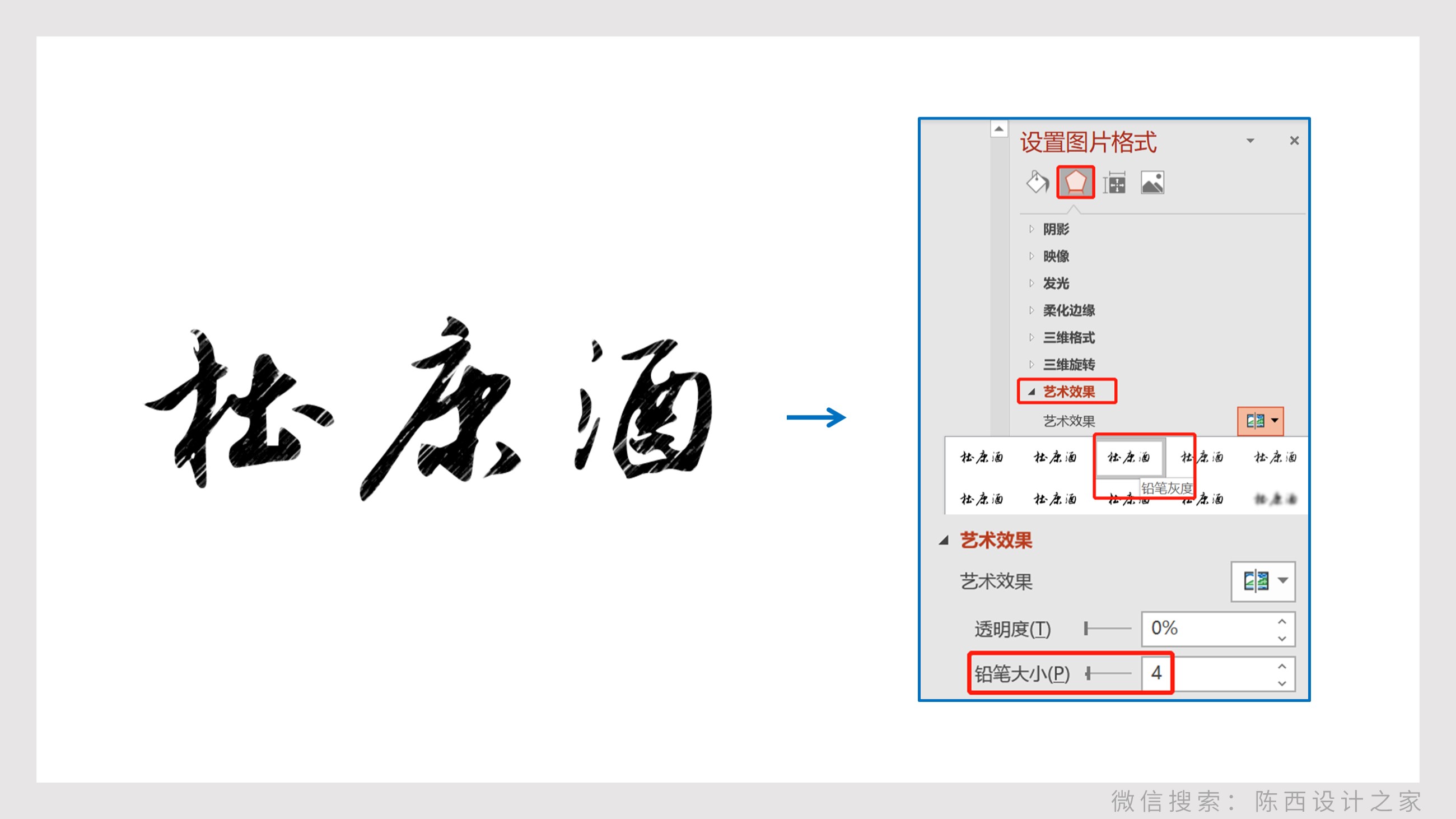 具体操作就是将文字粘贴为图片之后,进行图片的艺术效果设置。