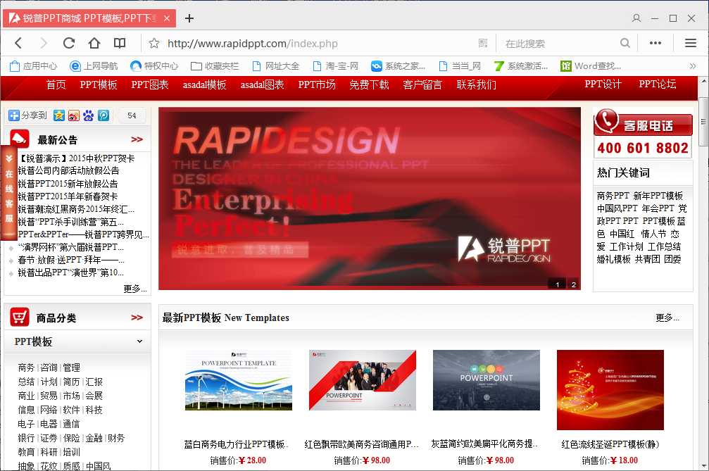 锐普(http://www.rapidppt.com/)网站不仅提供了不同类别的PPT模板、PPT图表和PPT素材等,还提供了PPT教程和PPT论坛。