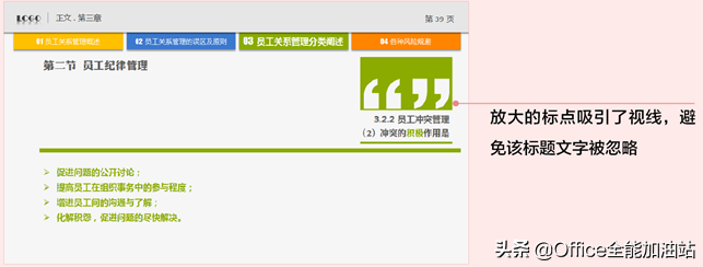 标点符号通常是文本的修饰,属于从属的角色,但通过一些简单的设置,也可以让标点符号成为强化文本的工具。例如,将标点放大到影响视觉时,就可以起到强调的作用,吸引观众的注意。名人名言或者重要的文本内容都适合使用这种方法,通常放大的标点适合“方正大黑体”或者“汉真广标”字体。