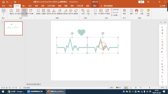 3.制作图形1根据自己的需求在PPT页面做好需要的图形,我这里插入一个心电图形