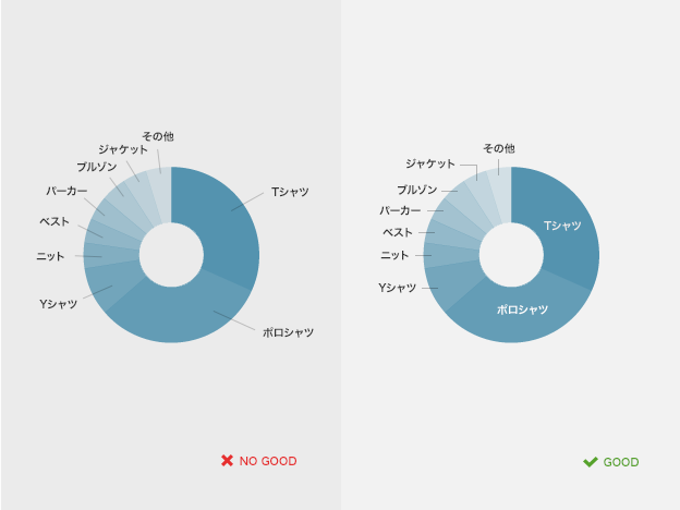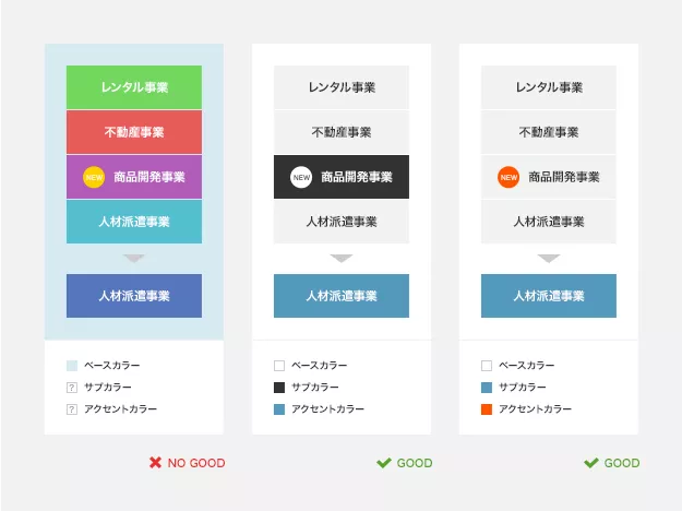 当项目多的时候要仔细斟酌颜色使用的数量,如果颜色过多会产生散漫的印象,因此要尽量少一些。