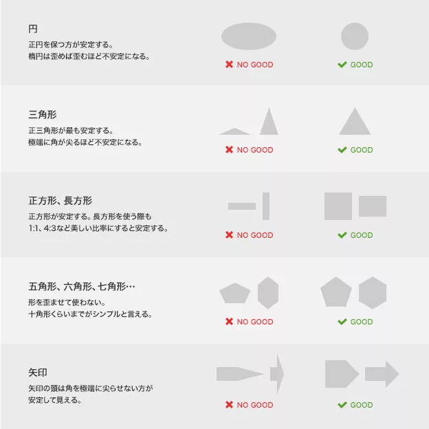 因此,尽量使用正圆形、正三角形、正方形、正五边形等图形。