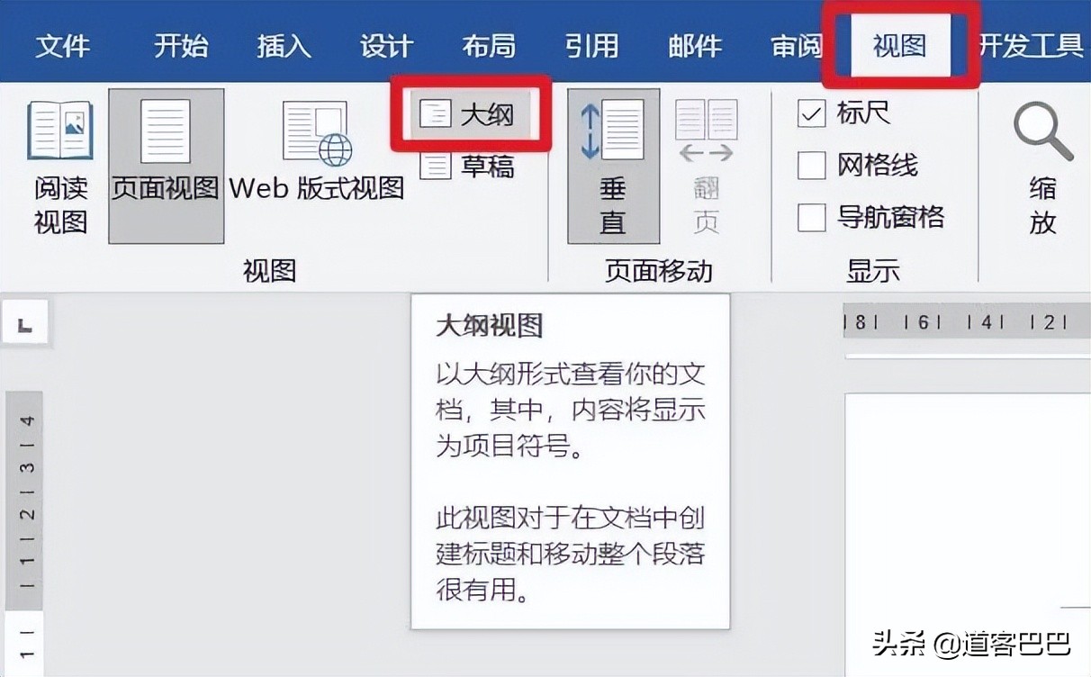 1、首先将需要转换的word文档打开,接着打开顶部菜单栏的【视图】,选择下方的【大纲】按钮,然后就会进入到操作页面中。