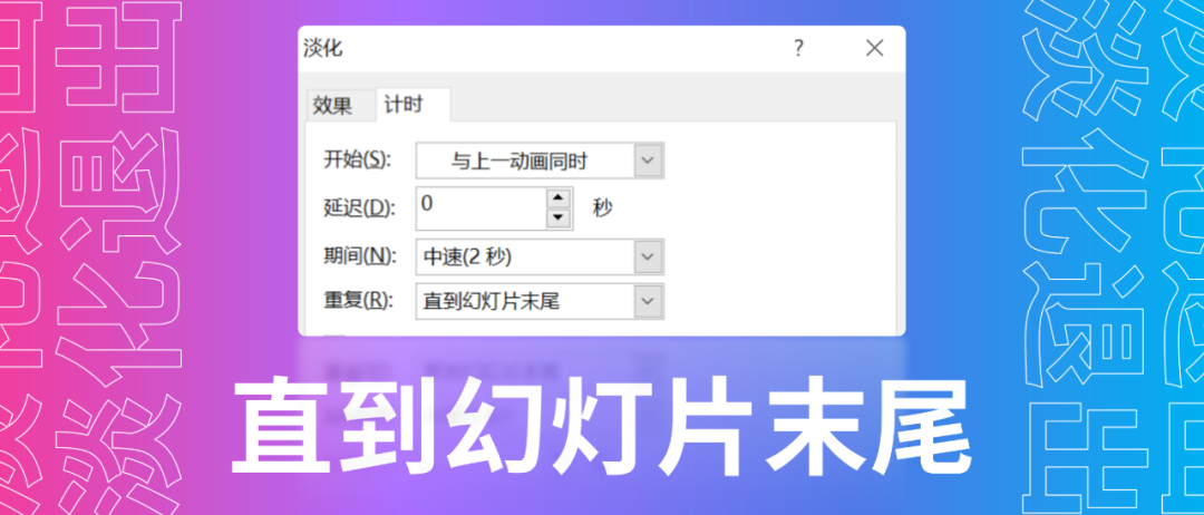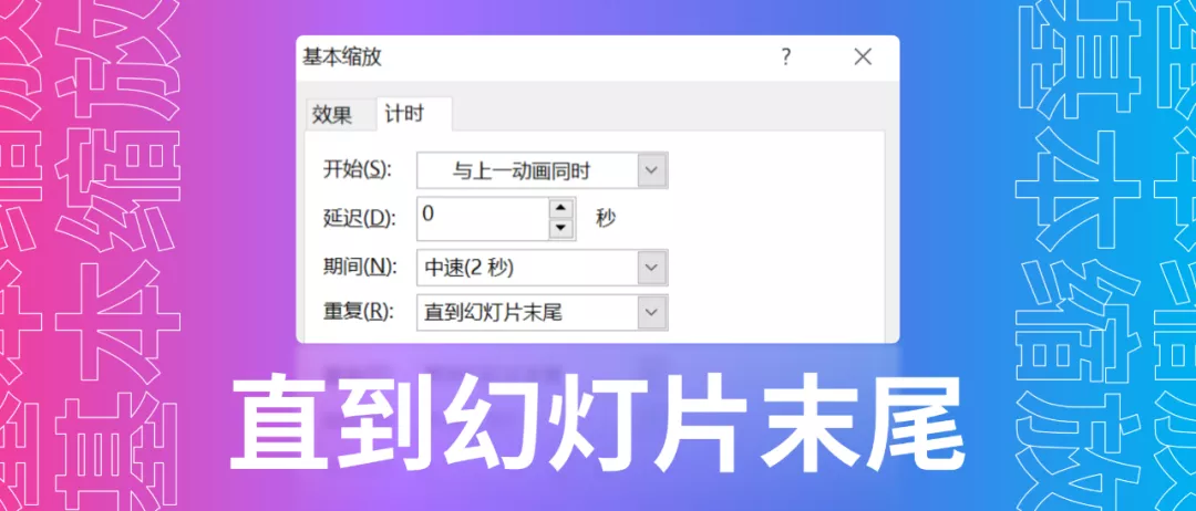 在效果选项中设置动画重复播放,直到幻灯片末尾: