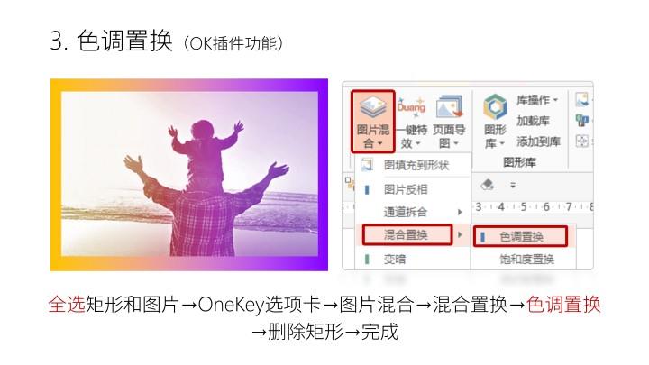 选中矩形和图片,使用OK插件的色调置换功能,完成后删除矩形即可