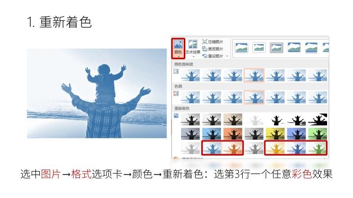 在PPT中要实现图片换色,一般是用重新着色(选中图片→格式选项卡→颜色),又或者是给图片添加半透明遮罩。但这种玩法太过简单,不能满足更高的平面设计需求。使用PPT+OK插件,可以便捷、准确的进行图片换色,可以让我们做出更好的平面设计效果