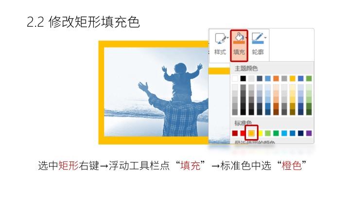 这一步把矩形填充橙色,也可以填充自己喜欢的颜色