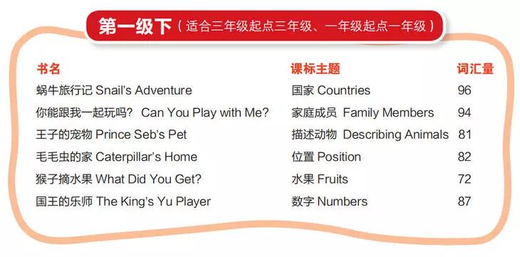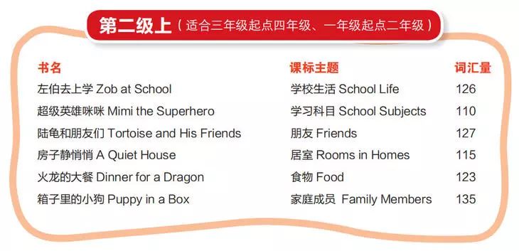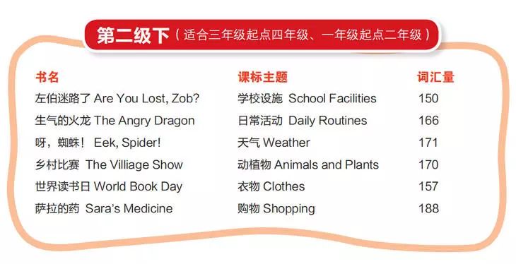 4.绘本故事主题与新课标话题全面匹配故事主题全部为课标话题,与学生生活及日常英语学习内容紧密相关,能够充分调动学生已有知识、经验及词汇,作为教材的有益补充