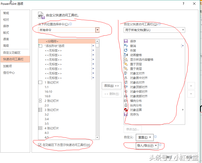 点击文件,选中选项,点击快速访问工具栏,就可以调出这个页面。
