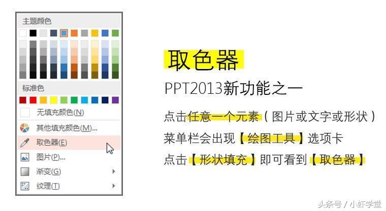 点击这个吸管,然后点我们想要的颜色就可以直接获取。取色的时候,我们可以从logo,或者公司的一些元素上入手。