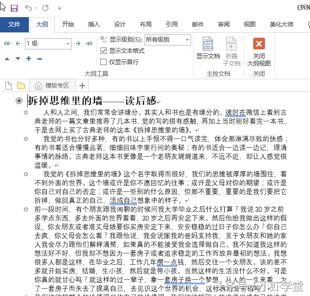 只需要在word视图中点击大纲视图,然后为文字设置级别就行。