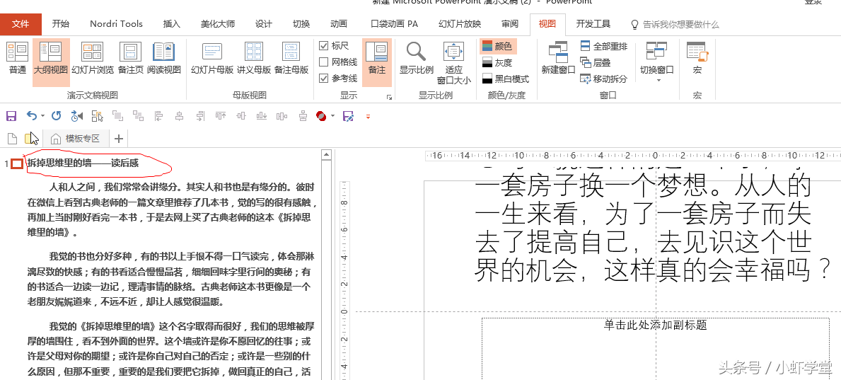 套上模板,做完减法之后,我们的PPT已经基本成型了,但还是比较丑,所以,我们接下去就要对PPT进行一些简单的美化。