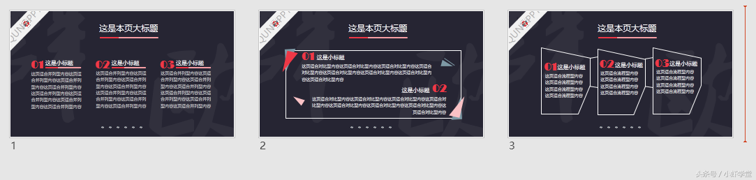 我这是随便套的一个模板,但是我看过很多公司的PPT模板,还是会有各种艺术的,阴影的,棱台的效果,反正什么效果都加。