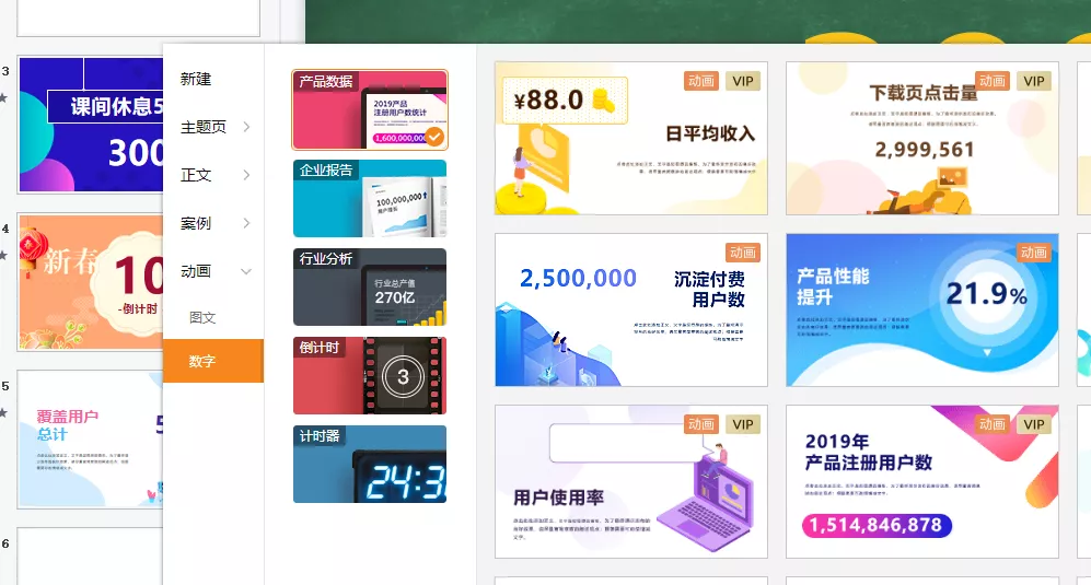 8.wps还提供了大量的数字动画模板,适用于不同的场景和效果,一键套用即可
