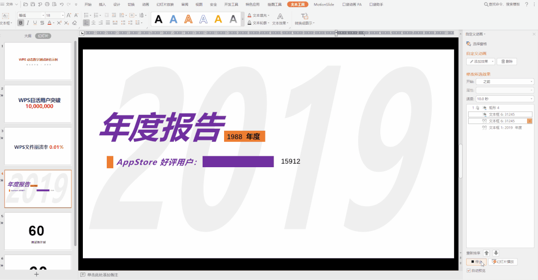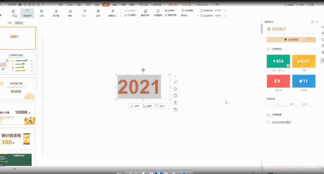 4.用wps中的动态数字功能,一键就能做出会动的数字图表PPT。