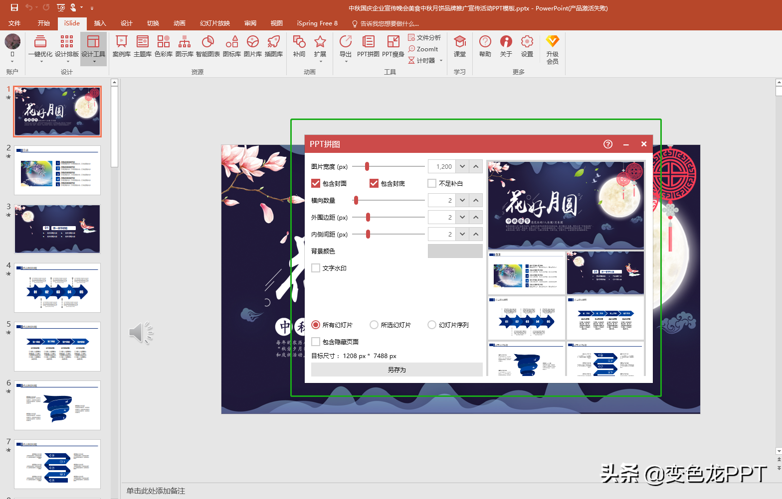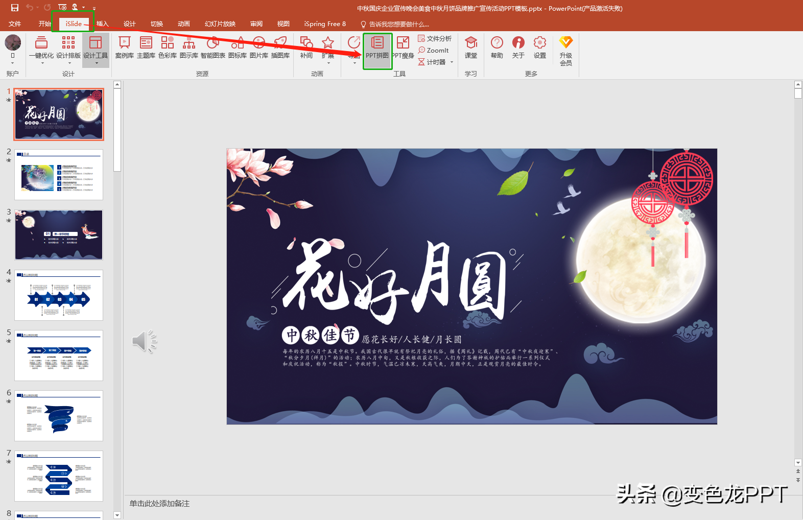 2、然后,点击islide,在工具里面,点击PPT拼图按钮